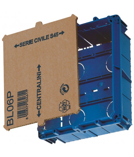 Einbaudose all-in-one paramalta verwendung mit: 45760/15 (Rüstung 15 module System-45), BL06C (Deckel ableitung IP40), BLST06 (Deckel abzweigdose IP55), BLST06TR (Deckel abzweigdose IP55 transparent), BLCG06C (Deckel ableitung IP40 mit GWT 850gradi C), 53T08.. (Abdeckung IP40 mit tür-fluss, um die telefonanlage mit 8 module DIN) - 53ST08E (Deckel IP55 telefonanlage für 8 module DIN), TS02PLUS (LCD Touch screen) und TS03.. (Touch-screen 5,7 zoll) - Abmessungen (b H T): 192 x 168 x 73 mm. Kombinierbar mit BLAS1.