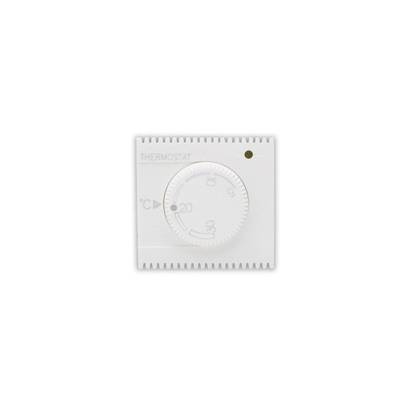 Termostato elettronico a manopola, Serie Domus colore RAL9010, per controllo temperatura ambiente - uscita con contatto in scambio NA+NC 5A (2A induttivi) 230V~ - range regolazione temperatura da 5 °C a 30 °C - alimentazione 230V~ 50-60 Hz - 2 moduli